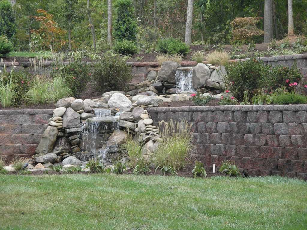Elegant water feature in this Anchor Diamond Pro retaining wall in Spring Creek subdivision |