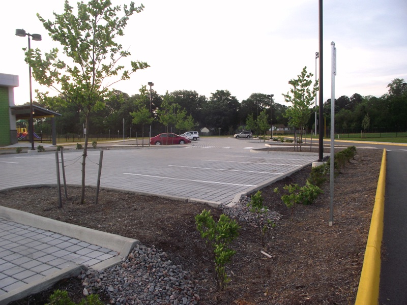 Simonsdale Elementary School Simonsdale Elementary School in Portsmouth, Virginia installed an environmentally friendly parking lot when they constructed a new school in 2011. Located at 4841 Clifford Street, Portsmouth, Virginia 23701, which is across the street from City Park. Phone 757-465-2917, Fax 757-465-2918 Permeable pavers allow the stormwater to drain through the openings between the concrete pavers allowing the water to seep back into the ground instead of running into the storm sewer and taking contaminated into the Chesapeake Bay, thereby keeping a cleaner bay today and tomorrow.