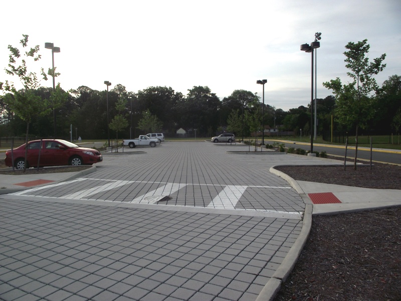 Parking lot spaces painted on the permeable pavers at Simonsdale Elementary School |